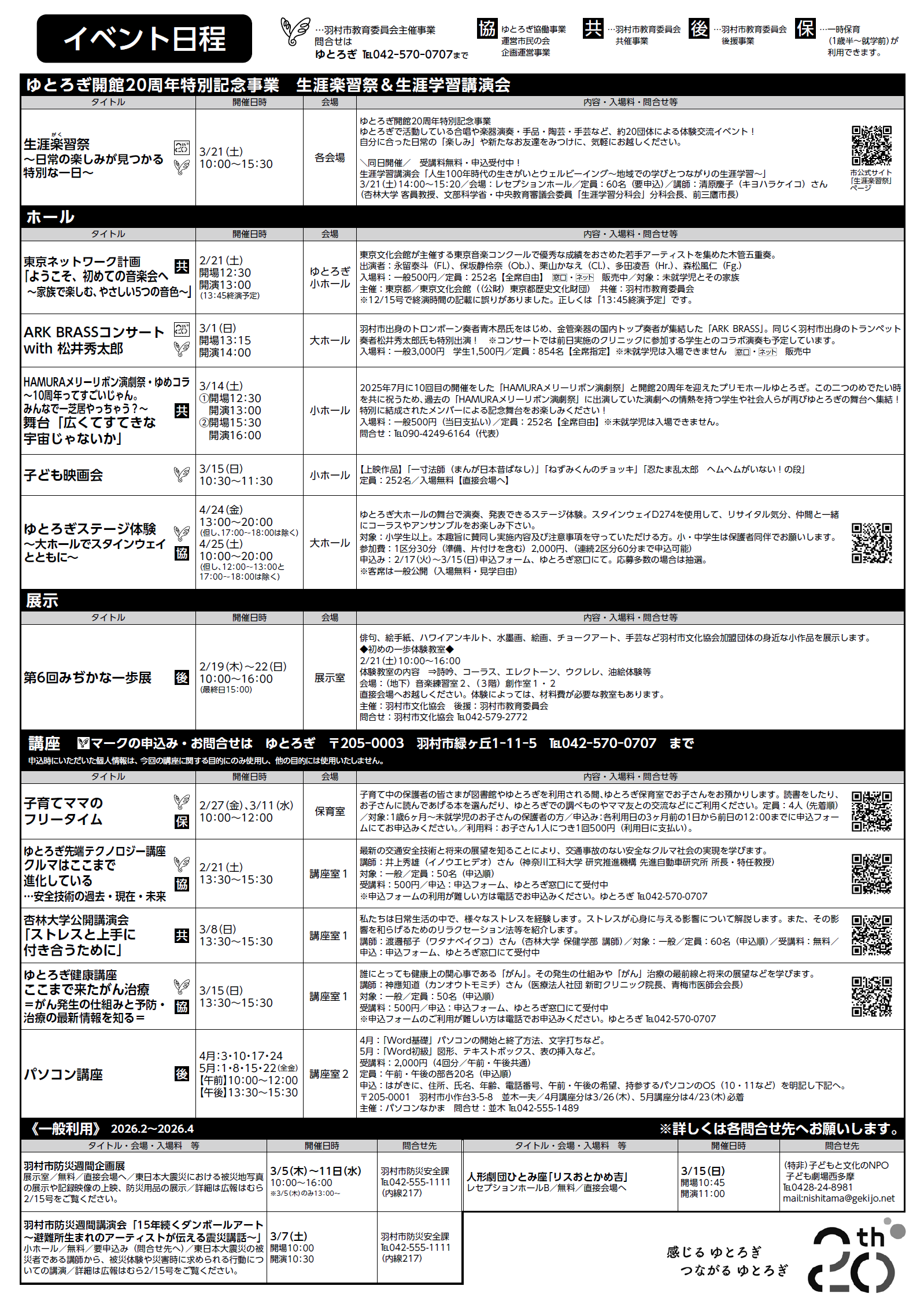 羽村市教育委員会 生涯学習部プリモホールゆとろぎ(生涯学習センターゆとろぎ)