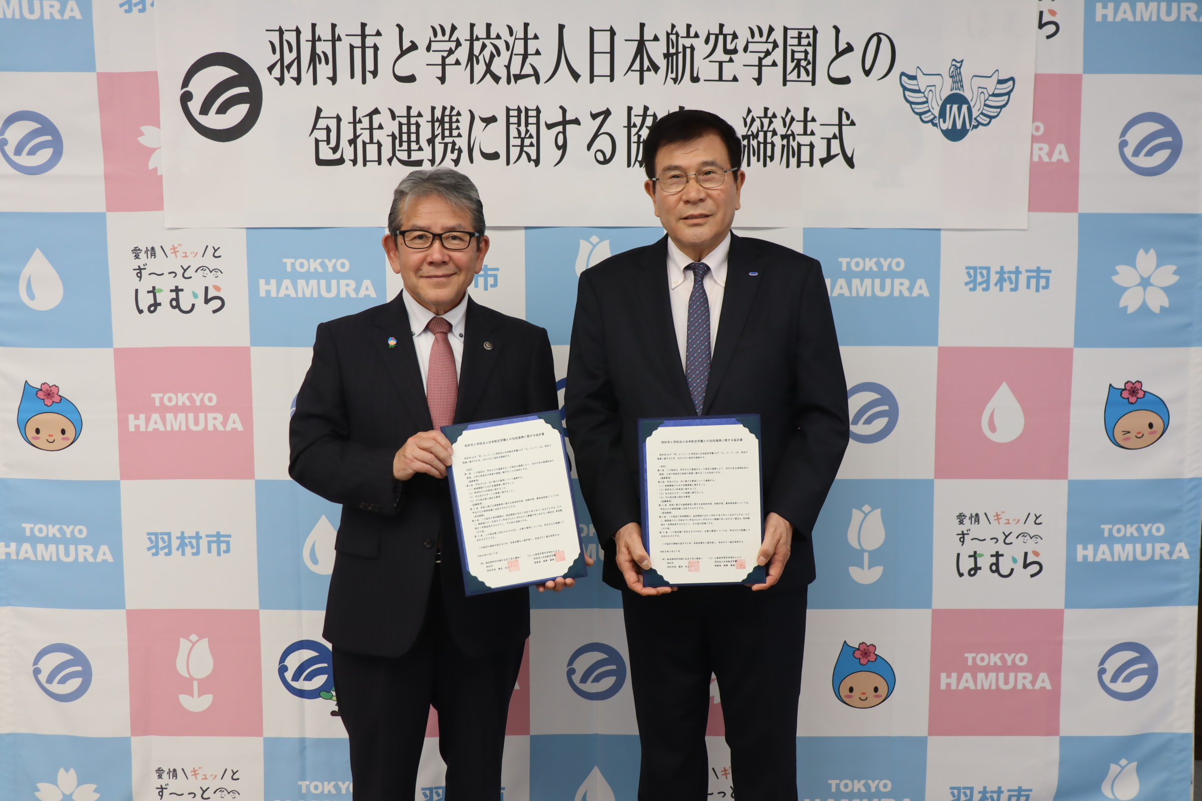 令和8年2月27日(金曜日)、羽村市と学校法人日本航空学園は相互の連携により、活力のある地域社会の創造、人材の育成及び両者の発展に資することを目的とし、包括連携に関する協定を締結しました。